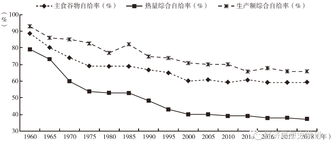2 日本食物自給率走勢(shì)(19602018年)