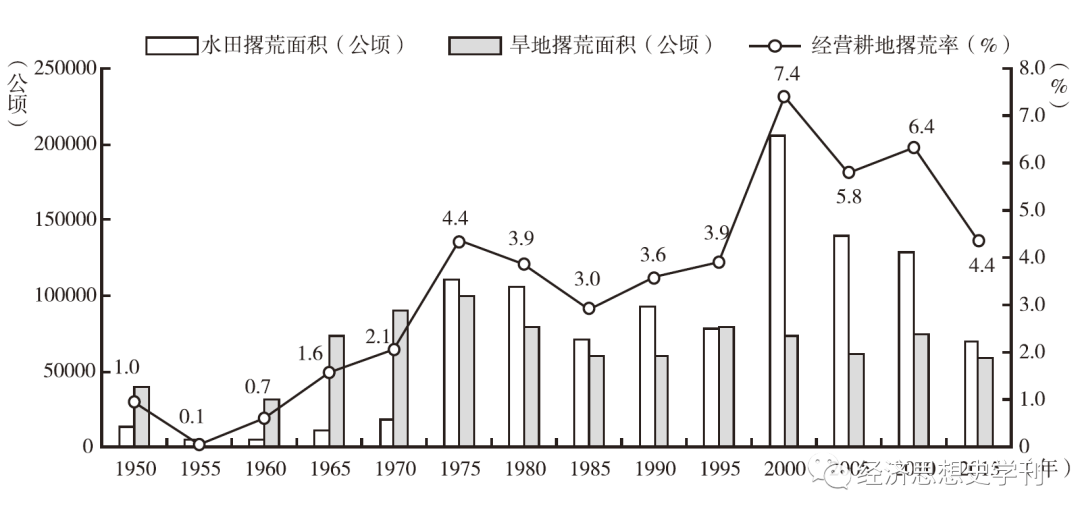 日本農(nóng)地撂荒棄耕情況(19502015年)