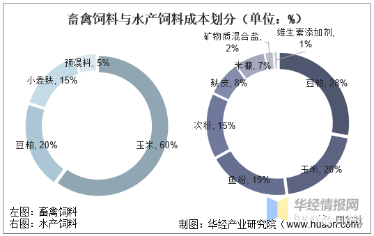 畜禽飼料與水產(chǎn)飼料成本劃分(單位:%