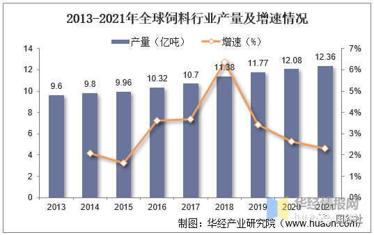 2013-2021年全球飼料行業(yè)產(chǎn)量及增速情況