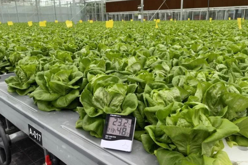 走進京東方廊下鎮(zhèn)特色蔬菜智聯(lián)工廠,一排排綠油油的奶油生菜“排排坐”,散發(fā)出蔬菜自身所帶的清香“體味”。這個味道可不是后期加工形成的,是因為這個工廠里沒有土壤和飛蟲,因此也聞不到各種肥料的刺鼻味道。敞亮、高聳的大棚里,盡收眼底的都是綠色蔬菜,感受到的都是高科技的種植技術和隨采隨吃的新鮮食用體驗感。